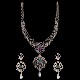Exquisite in its construction and form, the farie necklace and ear ring set are a minimally designed ornamental set for the discerning women folk of today, mimicking the facial structure of a woman along with her hairline and a bindi. The larger stones on the necklace and earrings can be customized in five different colors.