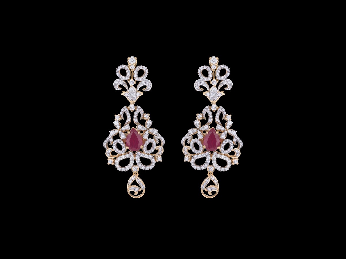 Carrying a decorative top and a multifaceted stone at its centre, the earring resembles the structure of a flower with a rather large dew drop gently grazing the petals and tipping over to its side.