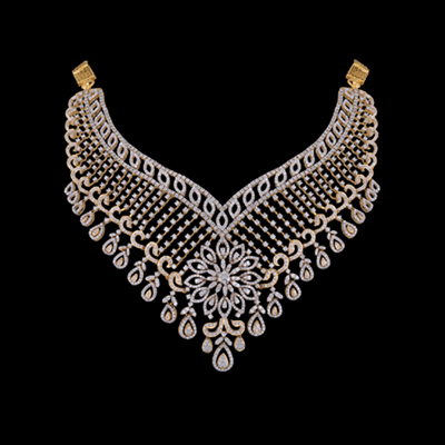An elaborately constructed ornament which forms the centerpiece in itself, the necklace is a work of art from the master craftsmen at Vairra, brought to life with the sole purpose of draping a woman’s neckline with the most exquisite stones possible.