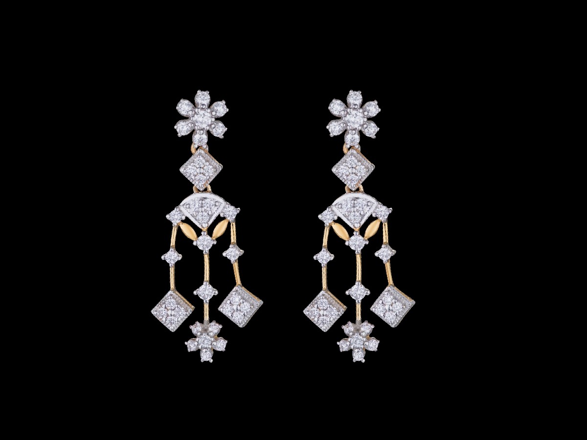 Donning a three-forked design with diamond and flower shaped embellishments at its ends, the earring is slender and minimal in nature, with very little going on in terms of its construction but at the same time very unique in its form.