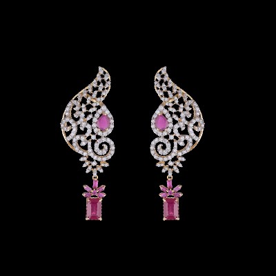 Taking the form of an organic looking conch, the earring is elaborately studded with diamonds with a realistic drop like stone at its heart and a larger, rectangular stone topped by miniature embellishments suspended from its base, to form this uber unique ornament.